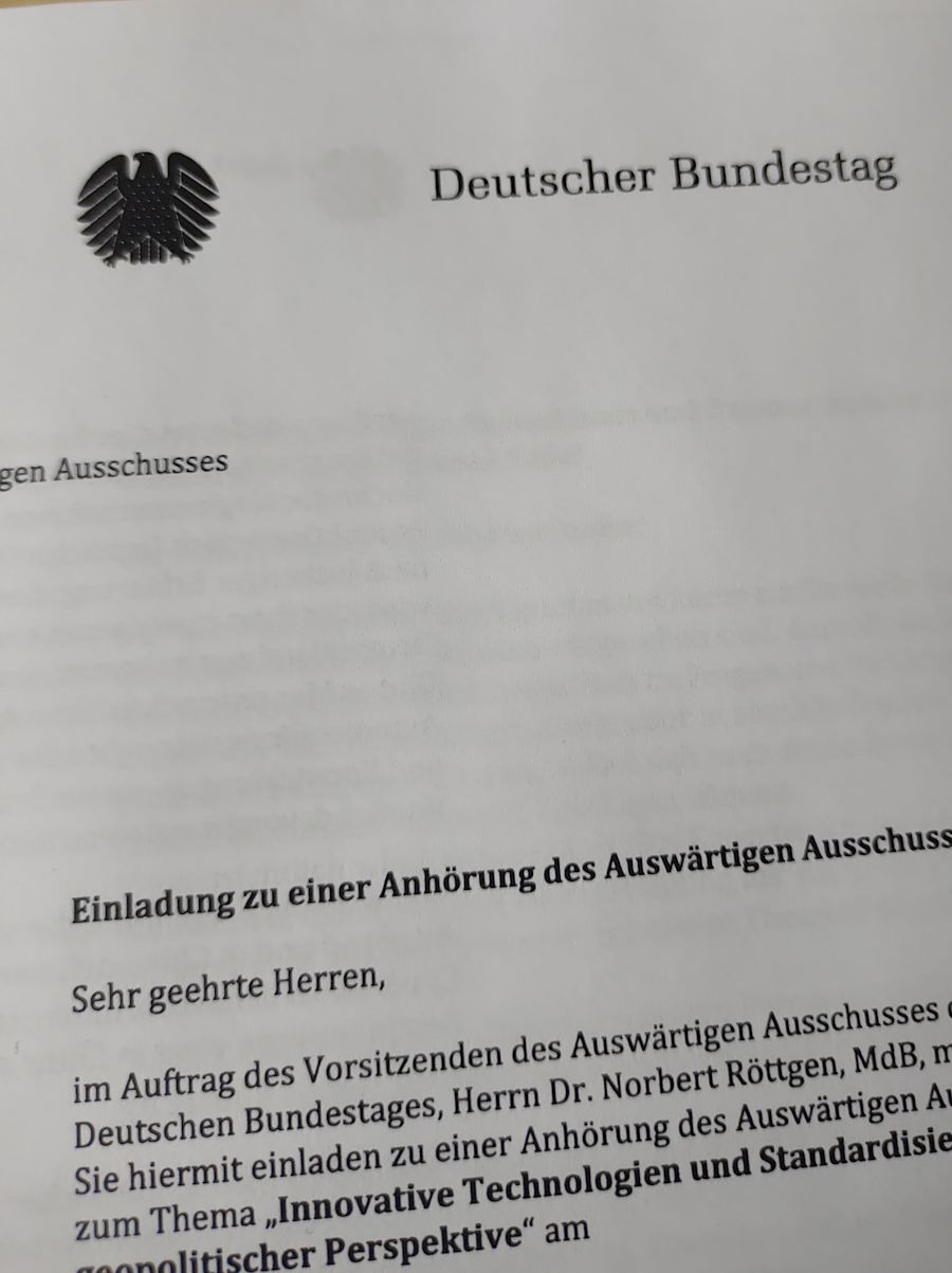 "Innovative Technologies and standardization in geopolitical perspective": Hearing at the Foreign Affairs Committee of the German Parliament