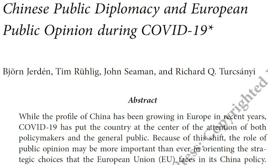 Out now: Chinese public diplomacy and European public opinion during COVID-19