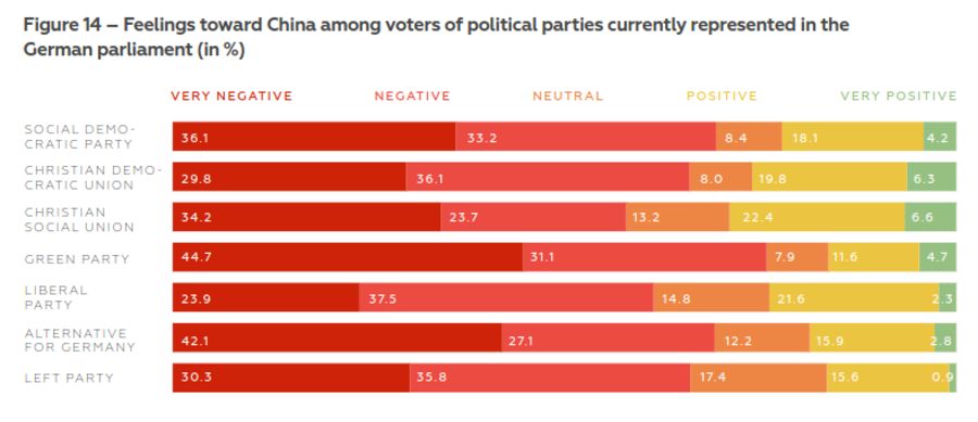 60% of Germans polled are willing to accept higher consumer prices to reduce economic dependencies on China, and only 31% approve of Chinese technology in Germany’s 5G infrastructure.